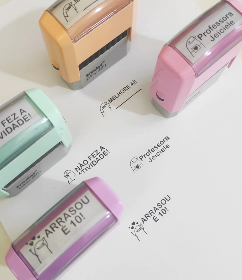 Carimbo personalizado 4x1cm. Compacto, ele oferece espaço suficiente para incluir nomes e informações importantes, garantindo praticidade e agilidade no seu uso diário.