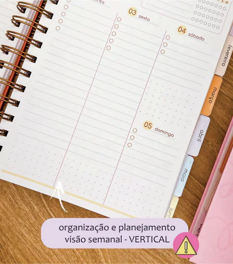 Atenção: A garantia cobre apenas danos identificados no momento da entrega. Caso sua agenda chegue danificada, entre em contato imediatamente para suporte. Não cobrimos danos decorrentes de uso, como riscos, quedas, descascamento, ou amassados.